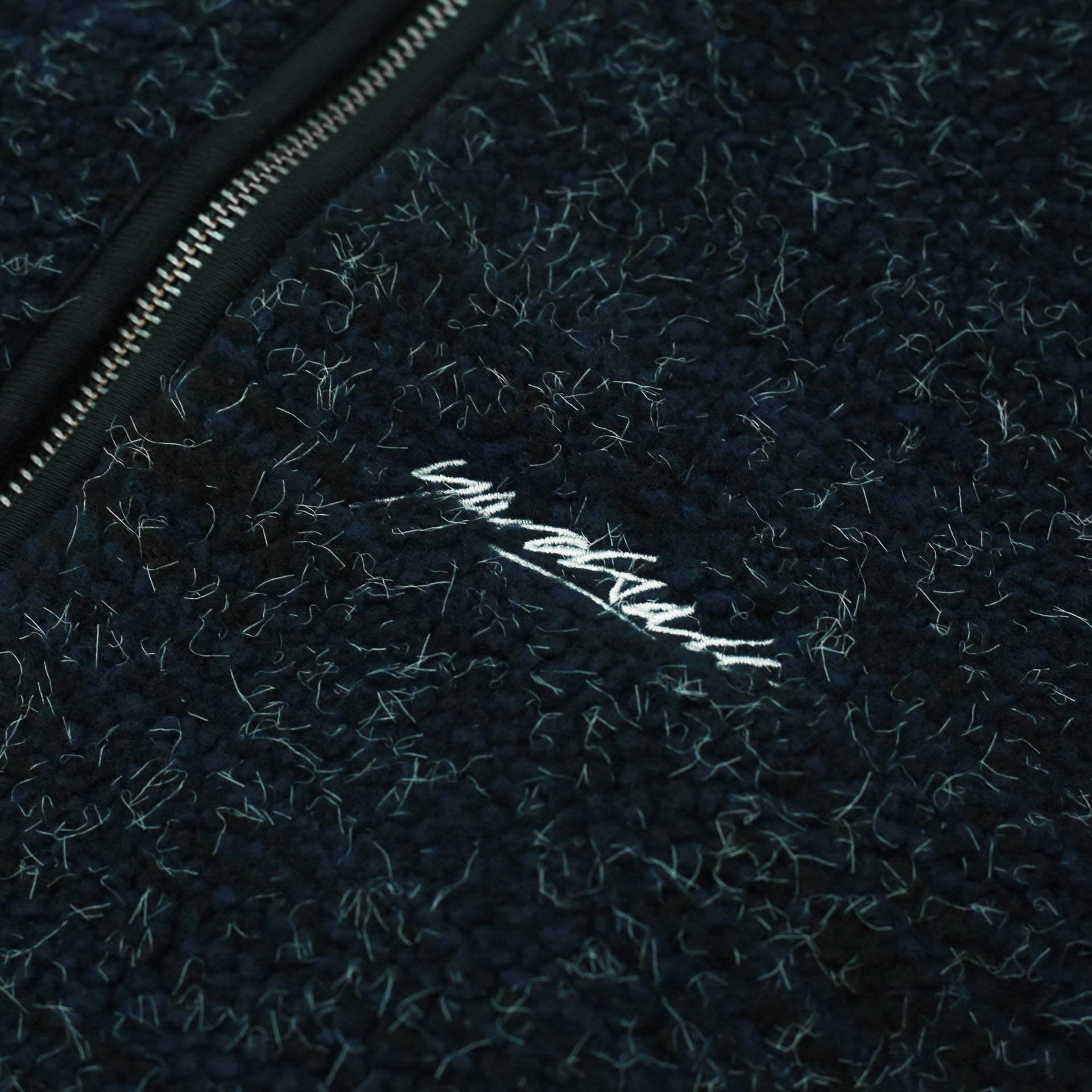 Zip pockets and script logo embroidery.